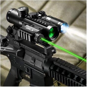 The Barska 4×30 IR Electro Sight (model AC11544-CO-G) includes a green laser and a 140 lumen flashlight. It’s designed specifically for tactical shooters who need a versatile scope for both short-distance, quick acquisition shooting and medium-to-long distance shooting.