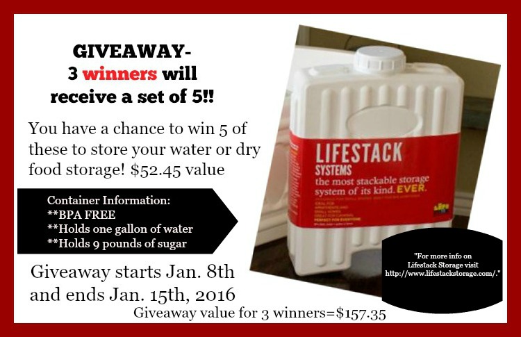 Three lucky winners will be chosen: each winner will get a set of 5 LifeStack Storage containers (1-gallon size).