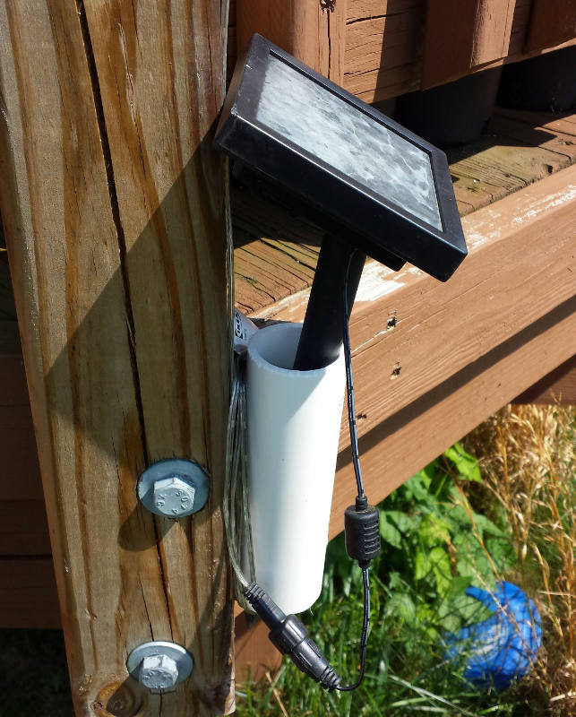 Now I can use a couple all-weather screws and mount these solar panels up off the ground, in more convenient spots.