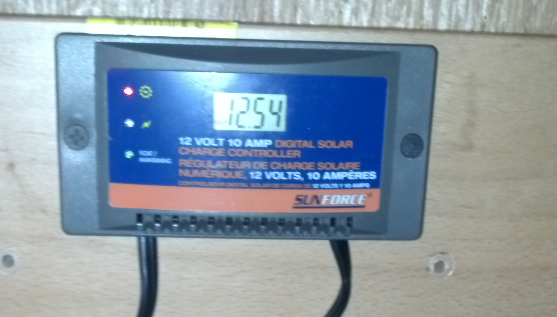 I got the Sunforce 60031 10amp Charge controller installed today. Now I can see the voltage of my battery bank.